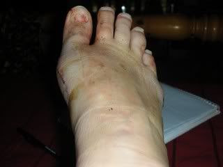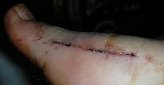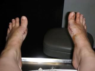 Here are my feet sans stitches and tape.